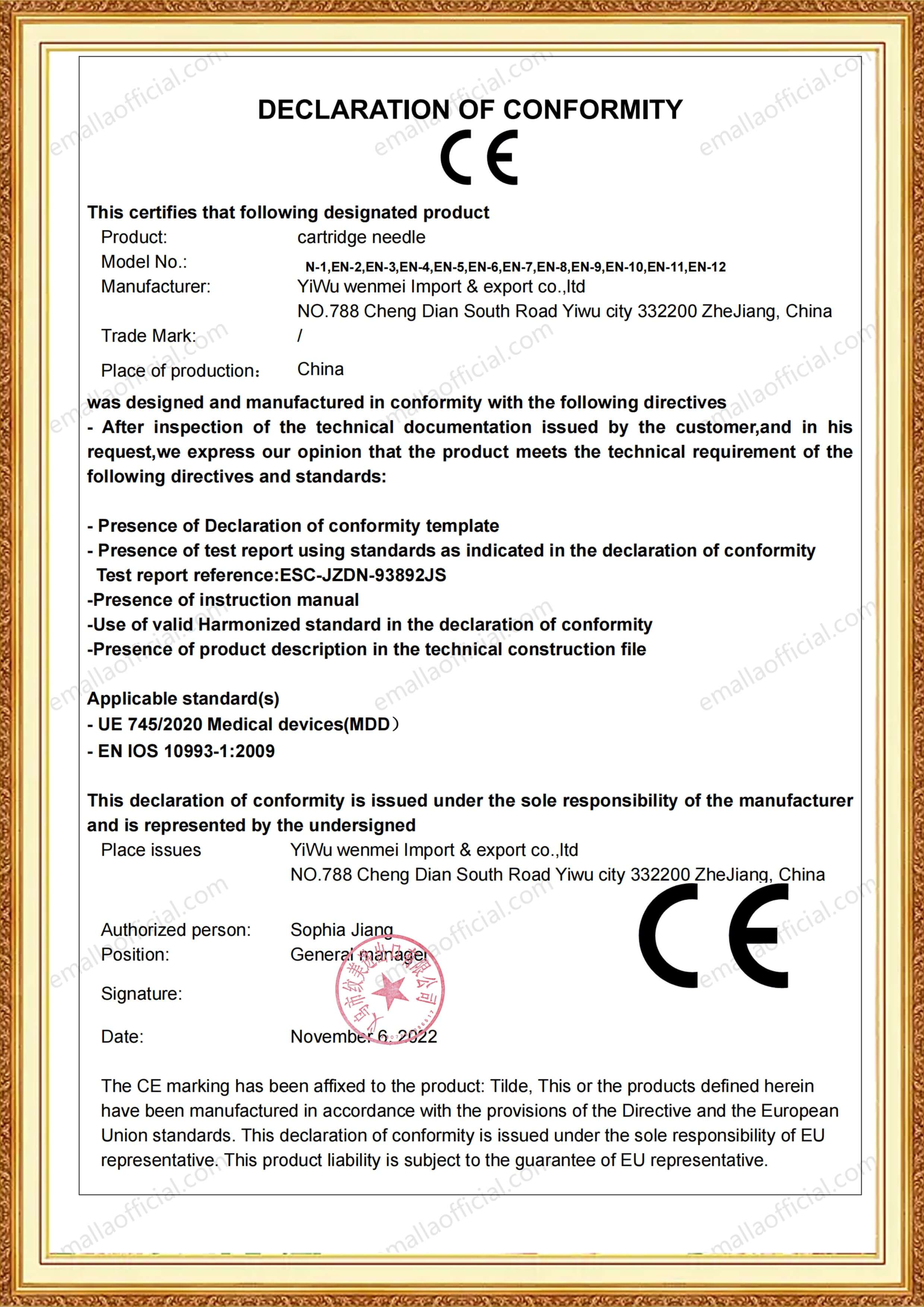 Le concept de la marque EMALLA® est de « RENDRE LE TATOUAGE SÛR ». Nous mettons l'âme dans la marque, c'est pourquoi les produits de tatouage de la marque EMALLA® sont à la pointe de l'industrie en termes de conception et de qualité supérieure. Nous nous engageons à offrir des produits et un service client haut de gamme, et nous pensons que le fait de continuer à aligner nos activités sur les besoins des clients est le meilleur moyen de promouvoir l'épanouissement de notre entreprise.
